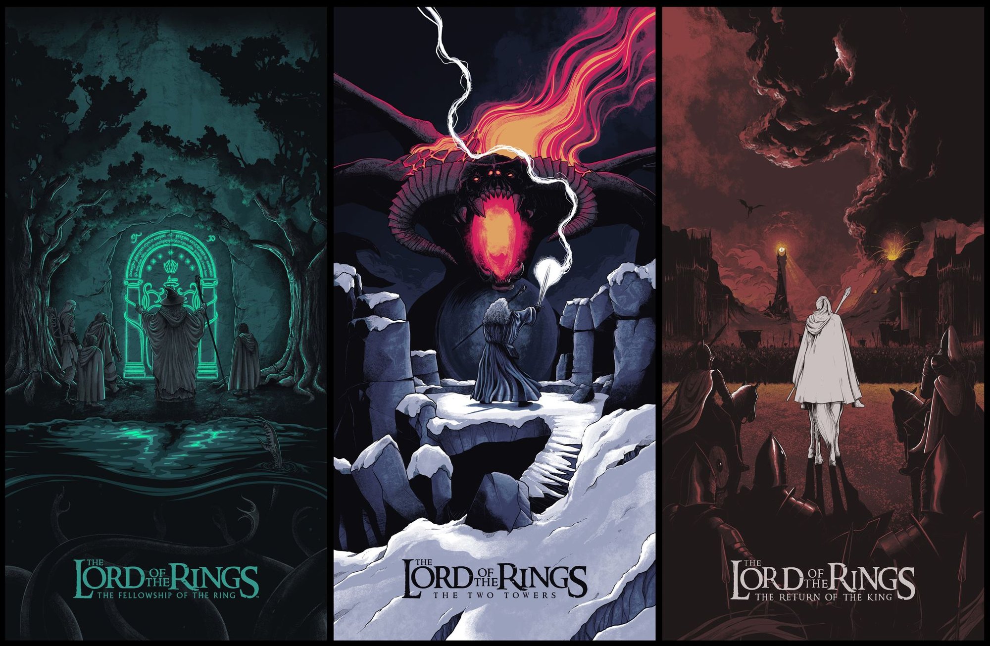 Lord Of The Rings - 18x36" (set of 3) Screenprints - Glow In The Dark